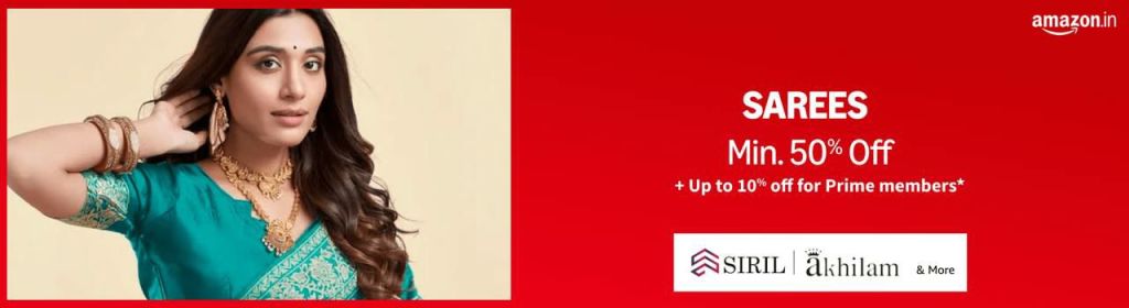 ๐งข Sarees โก๏ธMin. 50% off + Up to 10% off for prime members | Akhilam , Siril & more Shop Now ๐๐ผ https://amzn.to/4fb7jj0