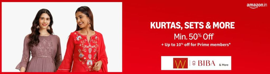 ๐ Kurtas, sets & more โก๏ธ Min. 50% off + Up to 10% off for prime members | Biba , W & more Shop Now ๐๐ผ https://amzn.to/46i8DN9